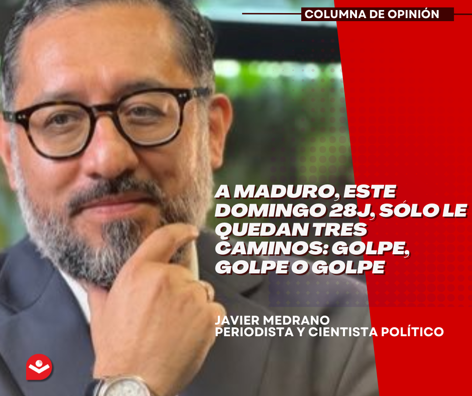 Home»Opinión»A Maduro, este domingo 28J, sólo le quedan tres caminos: Golpe, golpe o golpe