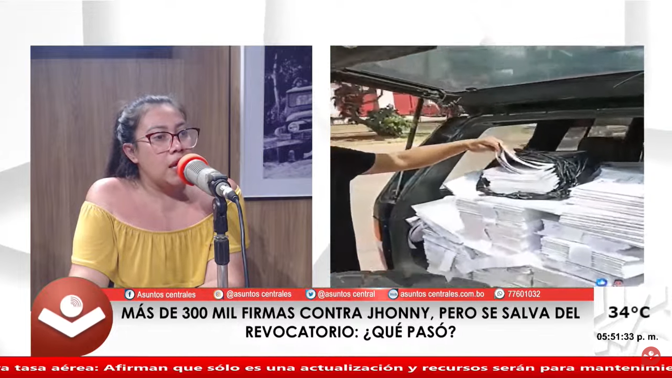 La activista Lilibeth Coimbra reveló en Asuntos Centrales que la organización que impulsaba el revocatorio del alcalde Johnny Fernández resolvió no destruir -por ahora- los 3.604 libros con las 326.886 firmas que respaldaron el pedido de finalización del mandato de la autoridad municipal y anticipó que las mismas serán contabilizadas antes un Notario de Fé Pública que elaborará un documento oficial de la iniciativa popular.