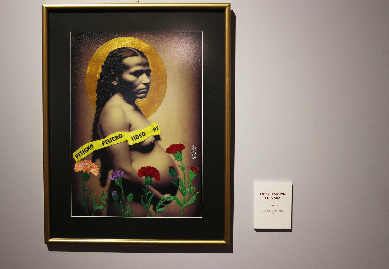También muestra a una mujer embarazada que está envuelta en las cintas de “peligro” y flores denominada “esterilización forzosa” u otra en el que se ve a una chica migrante o a las reconocidas Frida Kahlo y Marilyn Monroe dándose un beso, quienes han sido “sexualizadas” por los hombres y que incluso han sido “consideradas peligrosas” por su forma de pensar y actuar, comentó Paco.