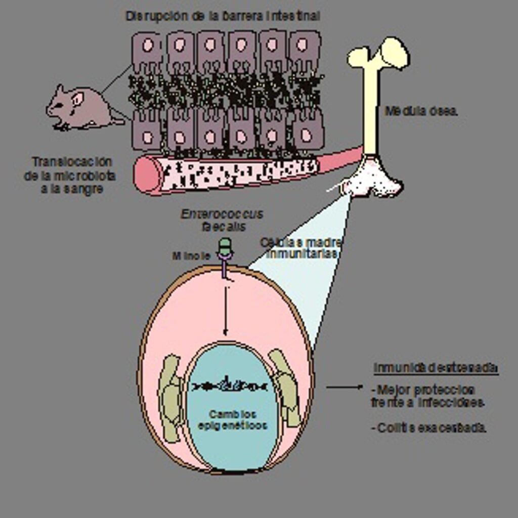 La investigación, que ha sido liderada por David Sancho, del Centro Nacional de Investigaciones Cardiovasculares (CNIC), describe cómo el aumento de la permeabilidad intestinal permite a las bacterias de la microbiota atravesar la barrera intestinal y llegar a la médula ósea, donde inducen cambios en las células madre que generan las células inmunitarias.