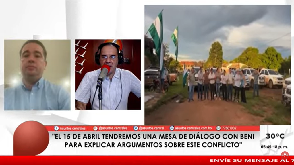 “El 15 de abril tendremos una mesa de diálogo con las autoridades del Departamento del Beni para explicar argumentos sobre este conflicto”, destacó.