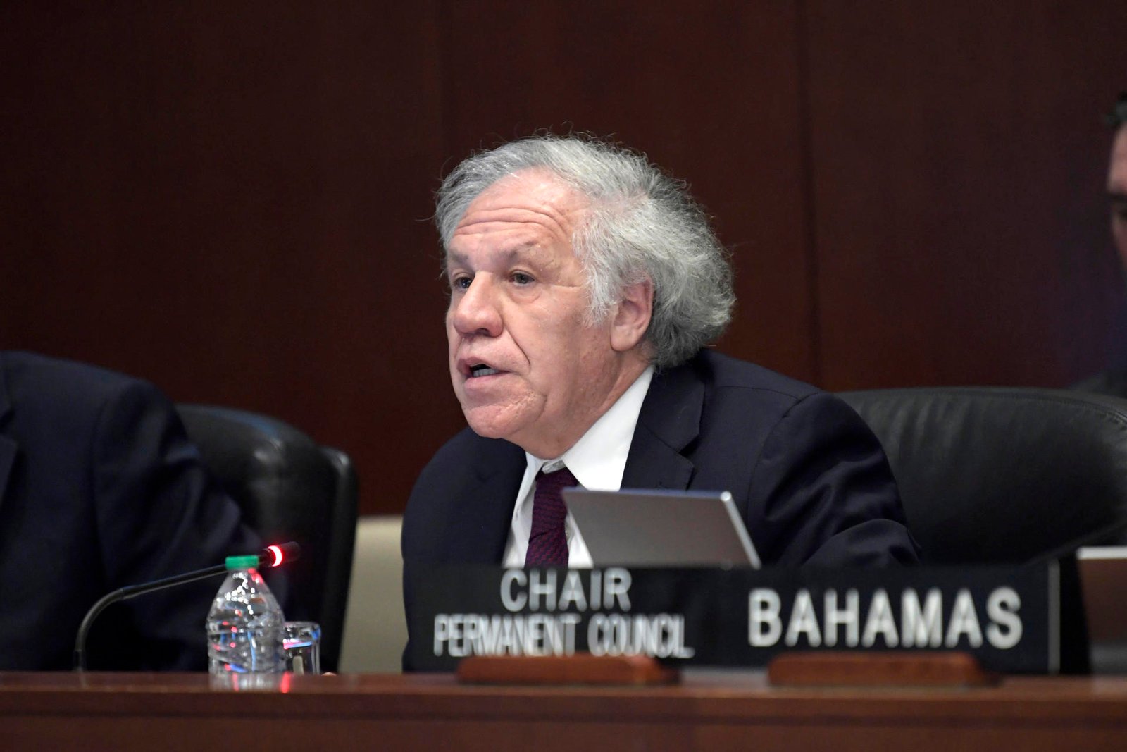 El secretario general de la Organización de los Estados Americanos (OEA), Luis Almagro, habla durante una reunión del Consejo Permanente de la Organización de los Estados Americanos (OEA) este martes en la sede del organismo en Washington (Estados Unidos). EFE/Lenin Nolly