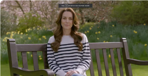 Sentada en un banco en los jardines de Palacio de Buckingham, Catherine habló durante dos minutos y 16 segundos. El mensaje fue filmado el miércoles por BBC Studios. Catherine, vistiendo un jersey blanco con rayas negras, habló sin aparentes nervios, pero miró brevemente hacia abajo al hablar del shock de su familia ante la noticia.