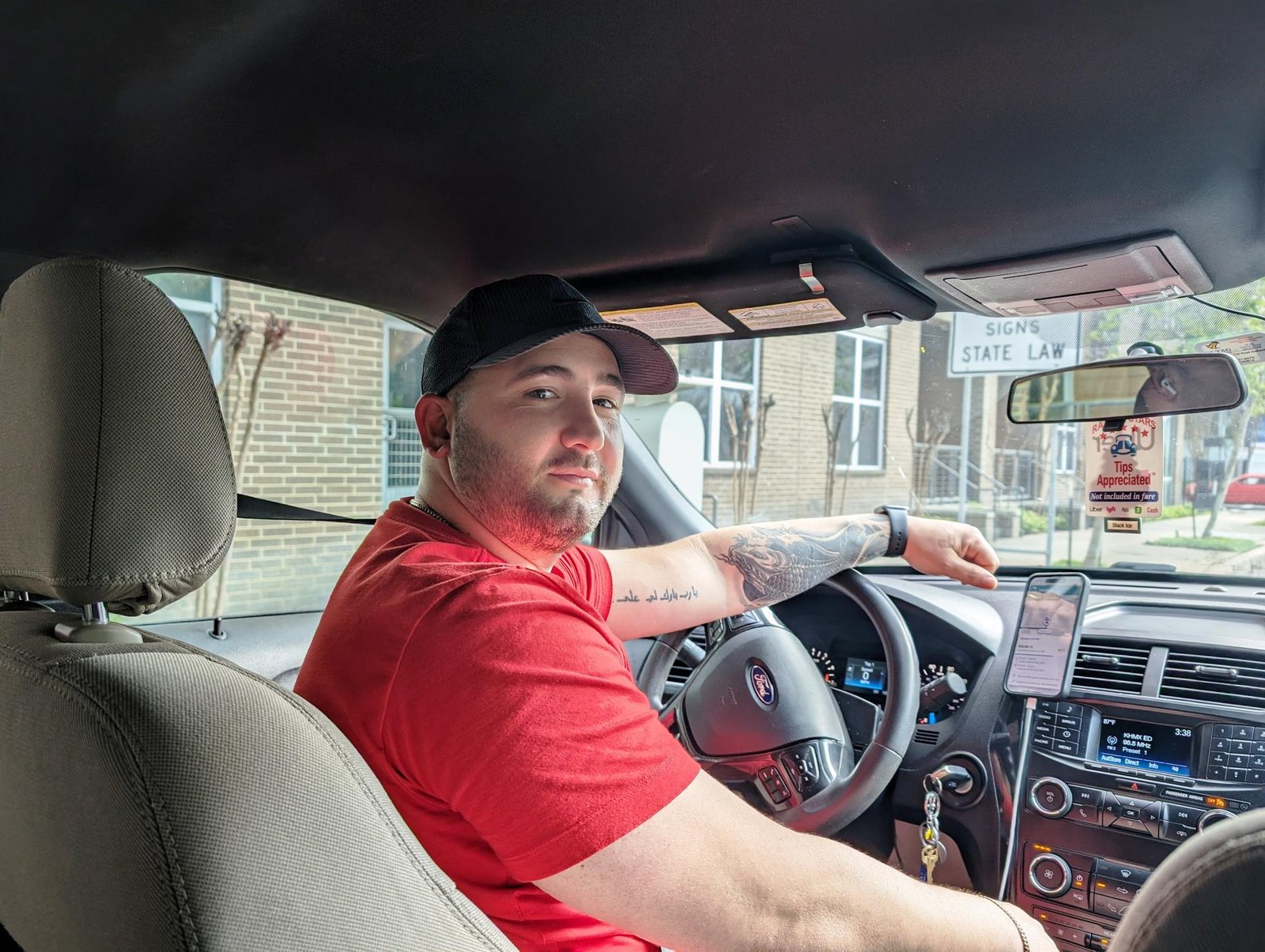 El cubano Jorge Saldivar posa para EFE en el interior de su auto el domingo 10 de marzo de 2024, en Houston, Texas (EE.UU.). EFE/ Sarah Yáñez-richards