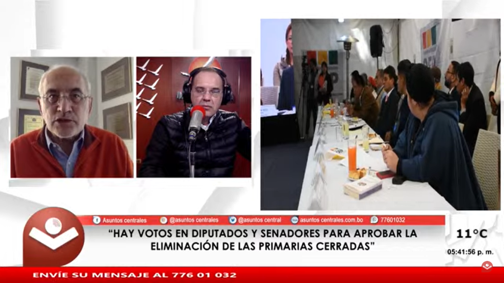En diálogo con Asuntos Centrales, Mesa acusó al expresidente Evo Morales de intentar chantajear el TSE con su decisión de no firmar el acuerdo multipartidario si el máximo tribunal electoral no avalaba el Congreso del MAS evista realizado en Lauca Ñ o postergaba el mandato de las directivas del MAS-IPSP.