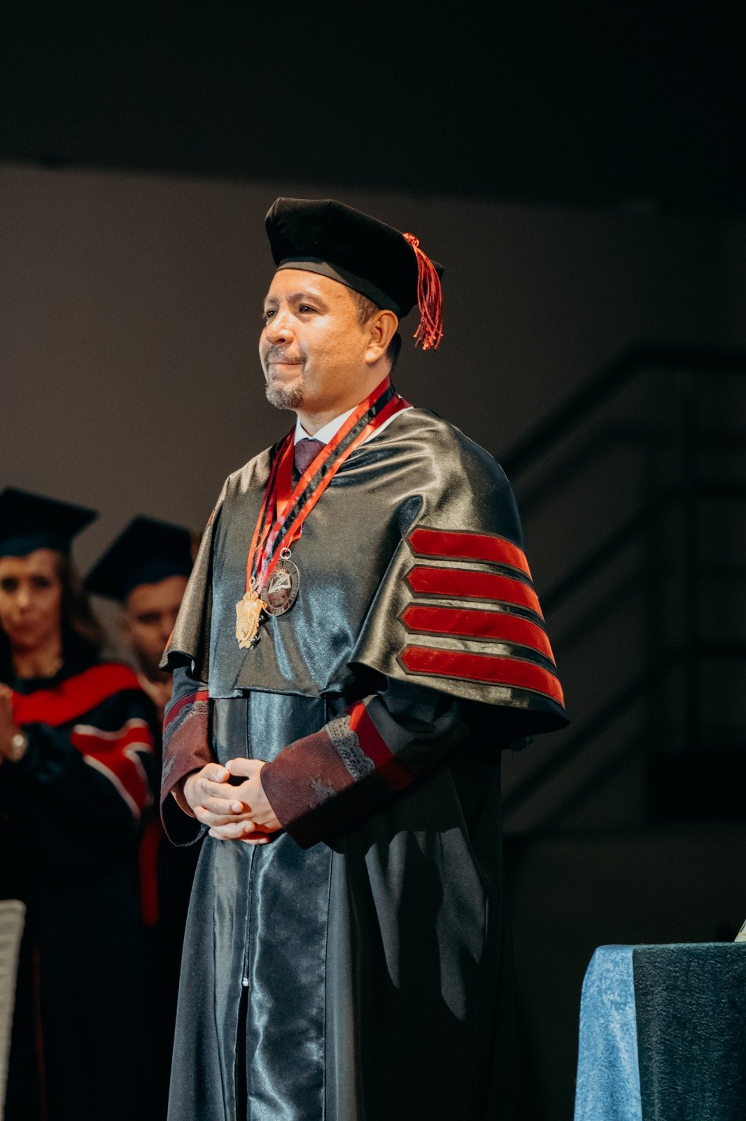 También subrayó el valor del liderazgo académico dentro de la universidad: “Yo solo quisiera remarcar que así como incentivamos y premiamos las aptitudes de innovación y de liderazgo entre los estudiantes, lo hacemos también con nuestro plantel académico y administrativo. Oscar es un ejemplo de alguien que habiendo ingresado a la universidad como profesor, fue asumiendo progresivamente mayores responsabilidades y nos enorgullecemos hoy de nombrar al primer rector surgido de nuestras propias filas”.