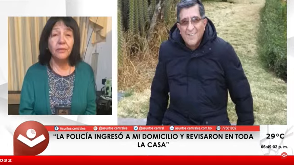 Katherine Antezana, esposa del ex General Tomás Peña Y Lillo, aseguró en diálogo con Asunto Centrales que el exjefe militar “no está en la clandestinidad”, aseguró desconocer su paradero y denunció el acoso policial en su domicilio ubicado en la zona sur de La Paz. Peña Y Lillo es el presidente del Personal del Servicio Pasivo de las FFAA.