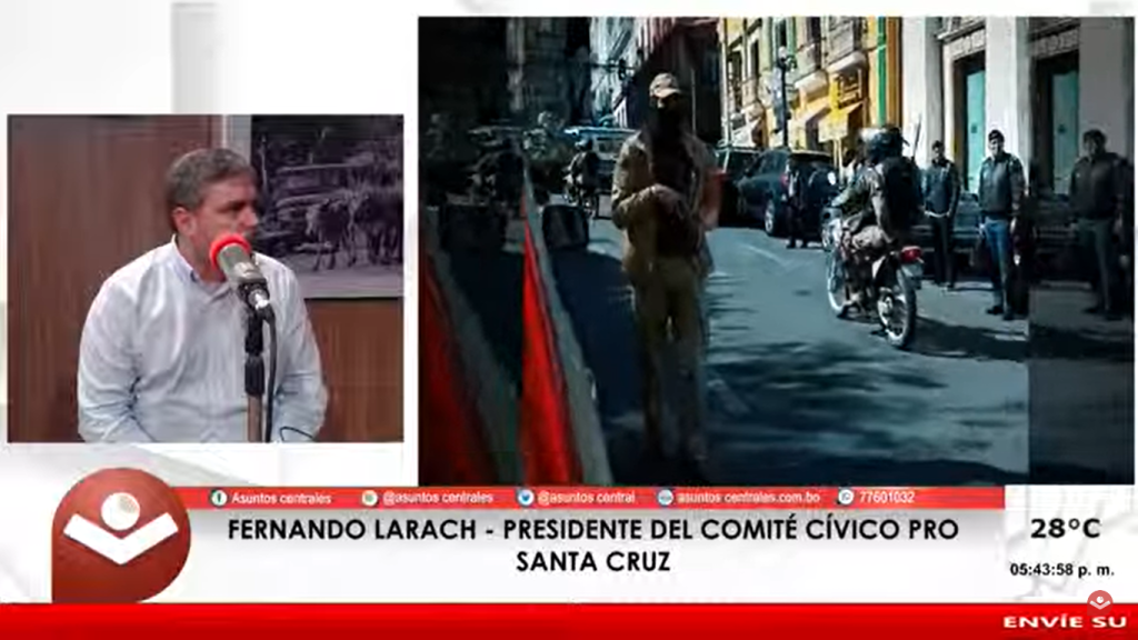 En diálogo con Asuntos Centrales, Larach recordó que el Comité Cívico fue una de las primeras entidades en llamar a la calma y exigir que las Fuerzas Armadas se mantengan dentro de los mandatos de la Constitución.