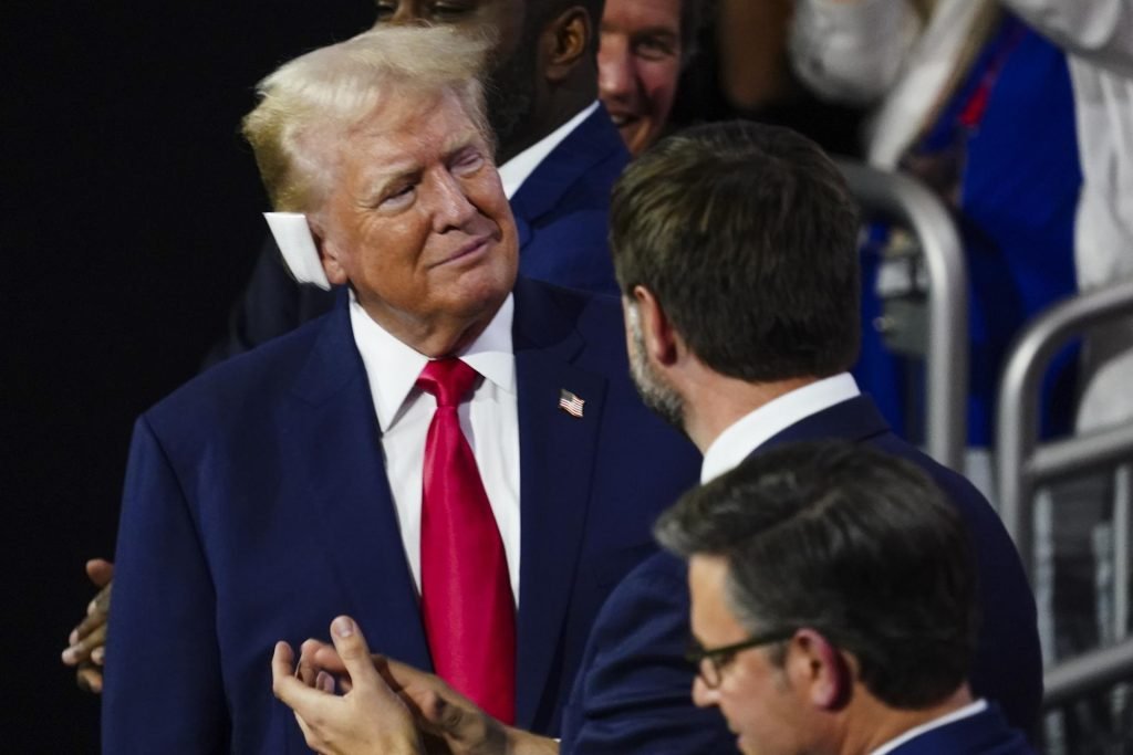 Trump reaparece con la oreja vendada ante los republicanos en Milwaukee